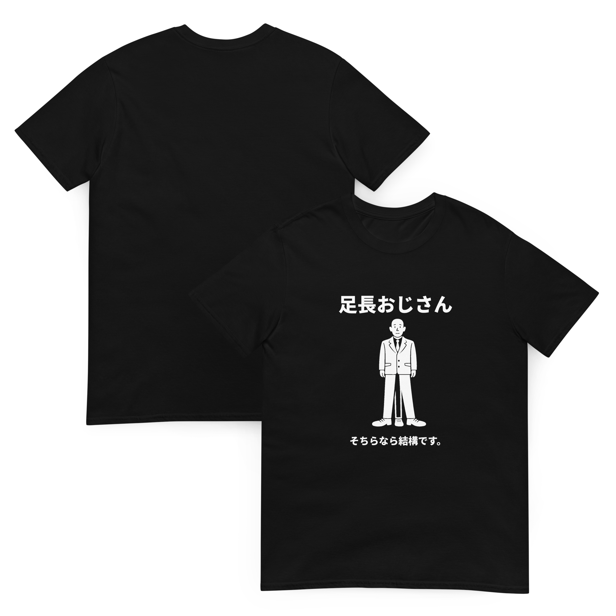 「足長おじさん」をそのままビジュアル化した、シュール系ネタTシャツです。
